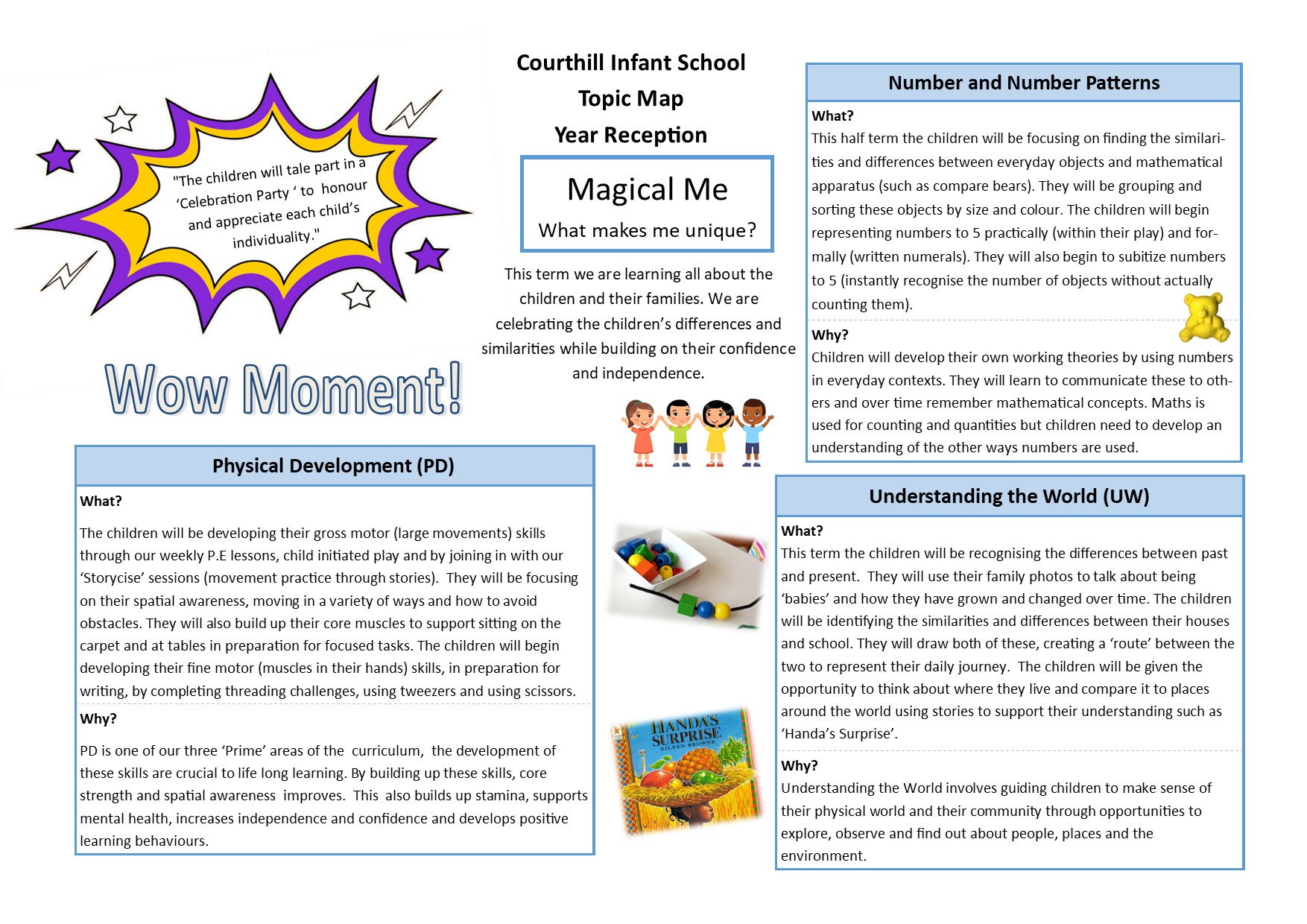 At Courthill Infant School we deliver an exciting and enriching curriculum that inspires them to be lifelong learners. Our aim is to ensure that your child gets the best out of these early stages in their school life. On this page you will find general information about Reception but also ways you can help at home. At the bottom of the page you will find learning updates and topic webs explaining what your child will be doing every half term.